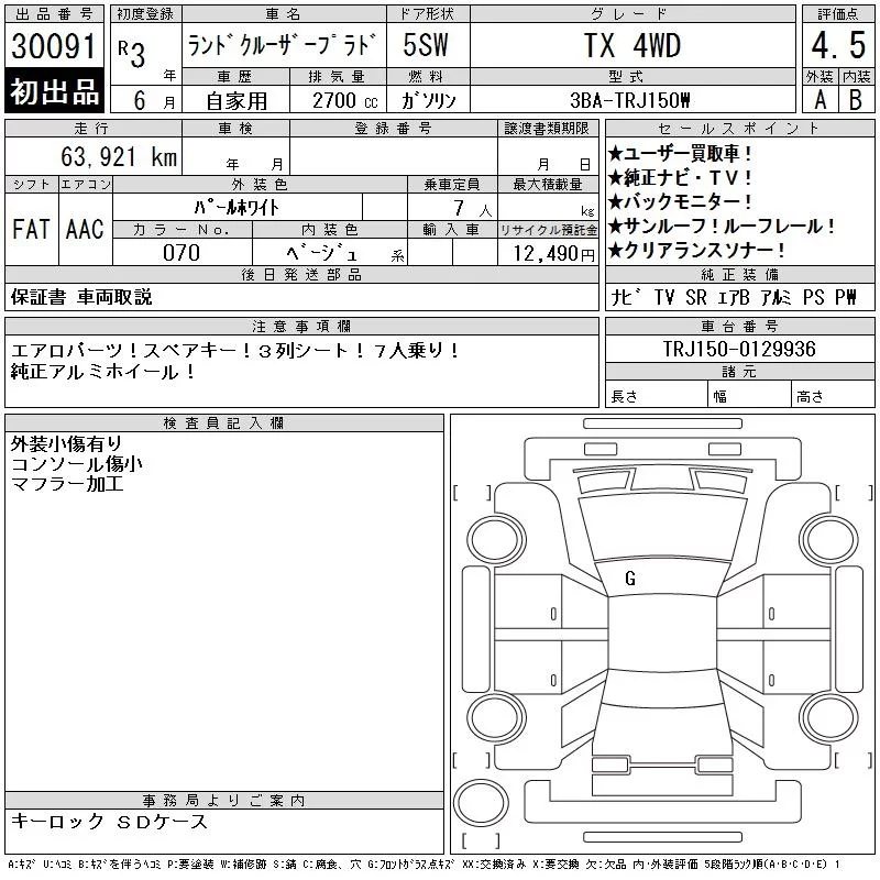 Toyota LAND CRUISER PRADO с аукциона Японии CAA Gifu лот № 30091