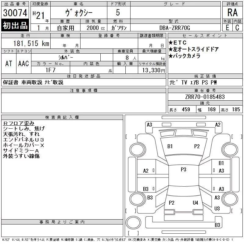 Toyota VOXY с аукциона Японии CAA Tokyo лот № 30074