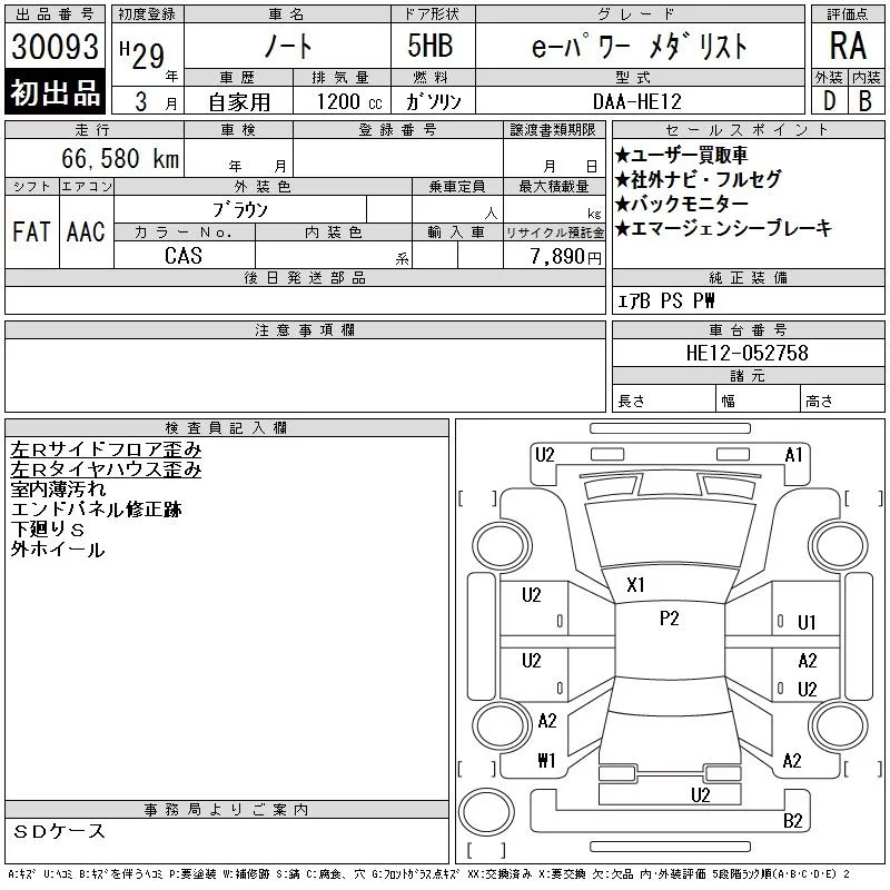 Nissan NOTE с аукциона Японии CAA Gifu лот № 30093