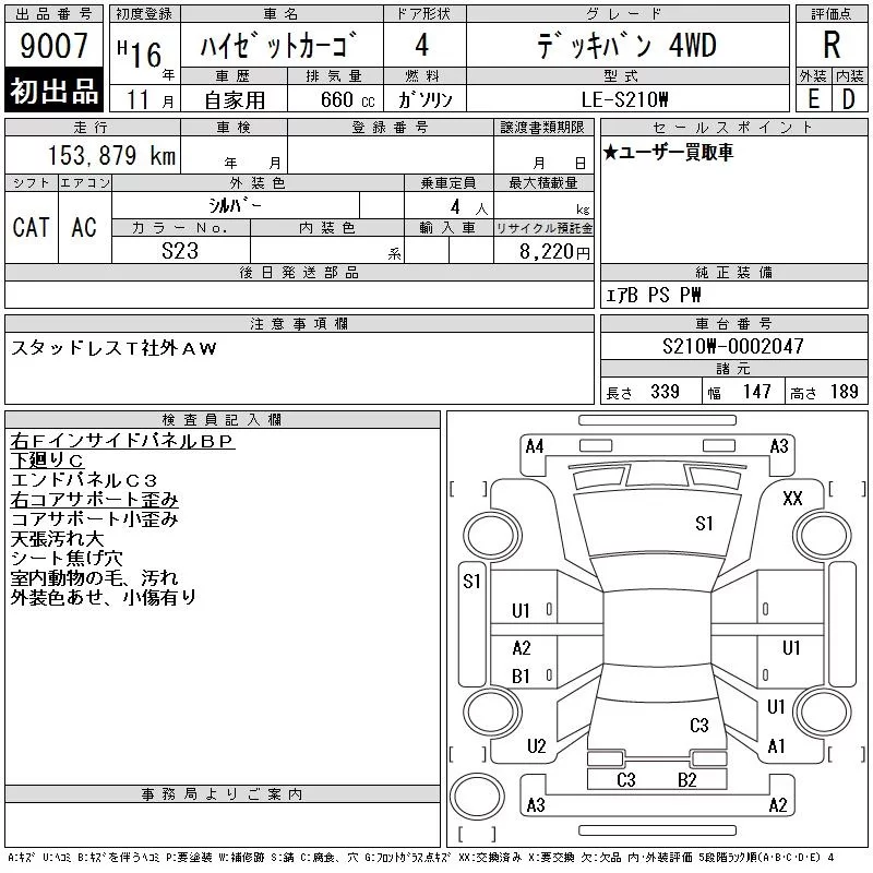 Daihatsu HIJET VAN с аукциона Японии CAA Tohoku лот № 9007