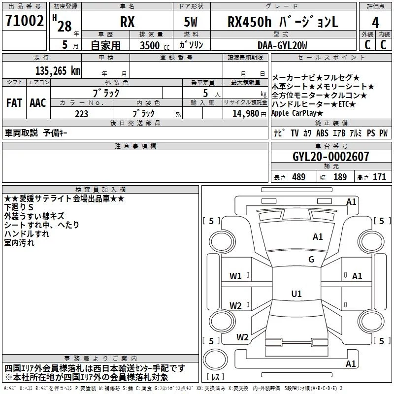 Lexus RX с аукциона Японии TAA Shikoku лот № 71002