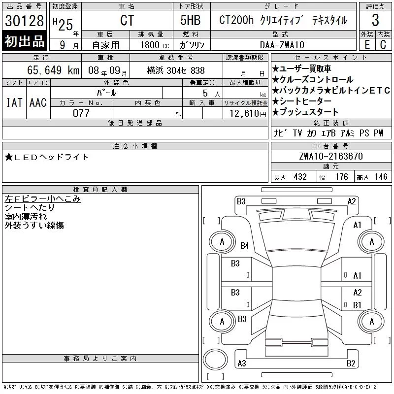 Lexus CT с аукциона Японии CAA Tokyo лот № 30128