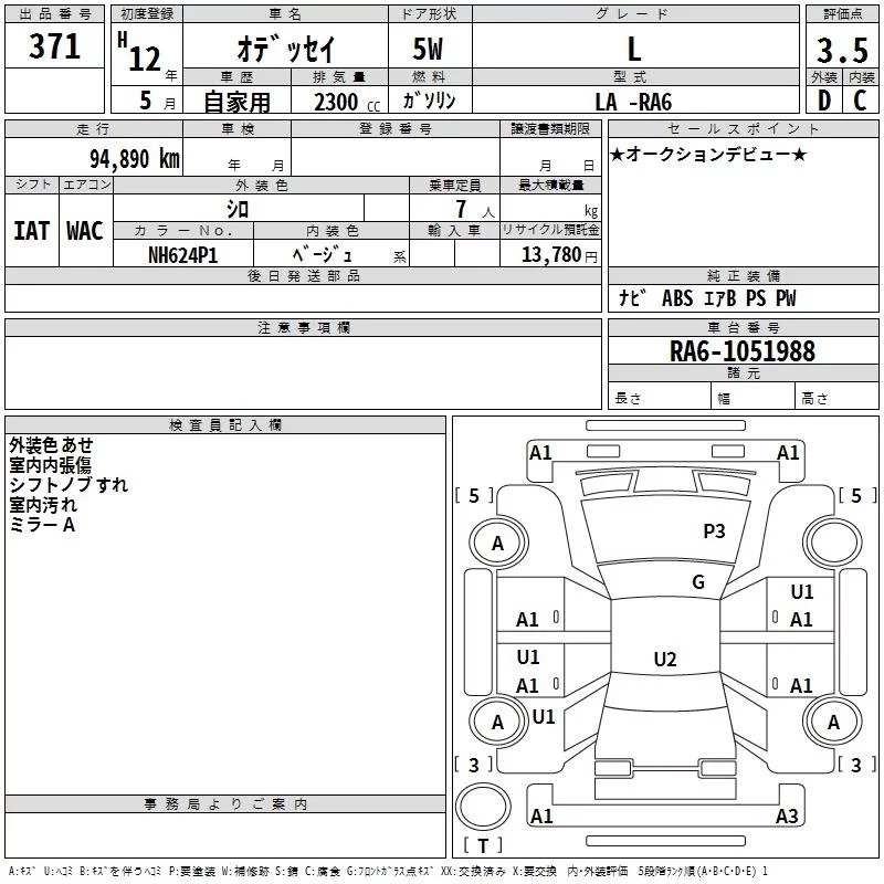 Honda ODYSSEY с аукциона Японии TAA Kinki лот № 371