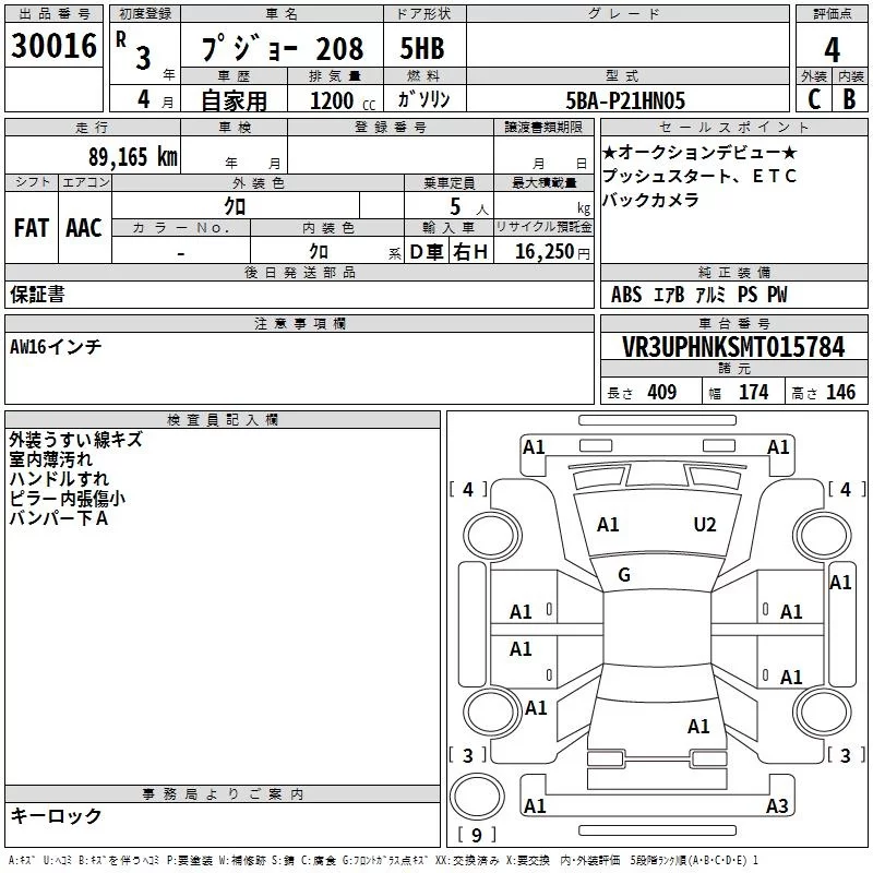 Peugeot 208 с аукциона Японии TAA Hiroshima лот № 30016