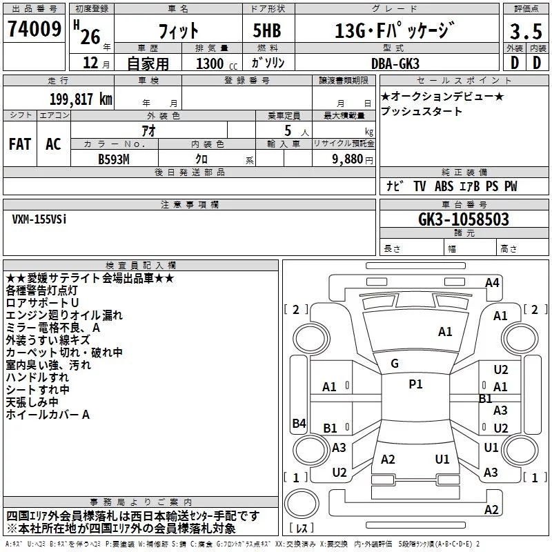 Honda FIT с аукциона Японии TAA Shikoku лот № 74009