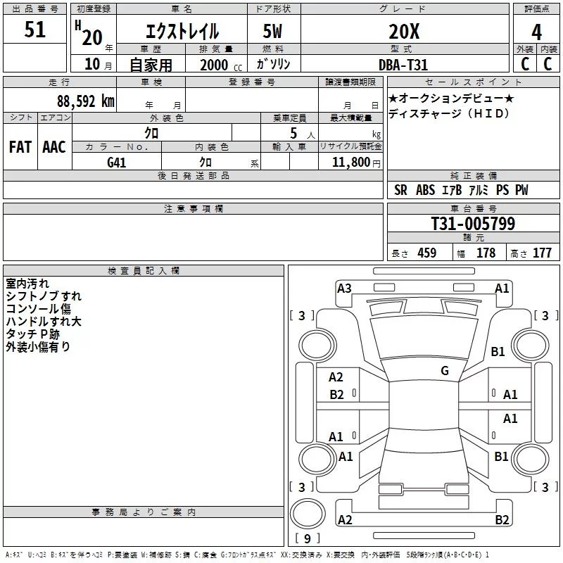 Nissan X-TRAIL с аукциона Японии TAA Shikoku лот № 51