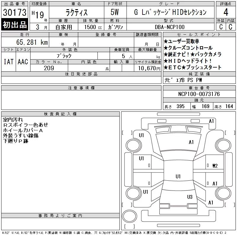 Toyota RACTIS с аукциона Японии CAA Tokyo лот № 30173