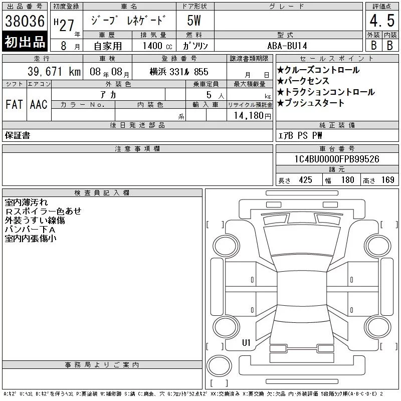Chrysler JEEP RENEGADE с аукциона Японии CAA Tokyo лот № 38036