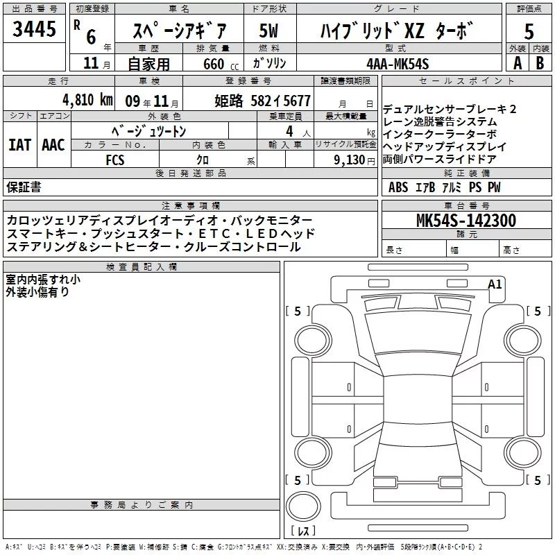 Suzuki SPACIA GEAR с аукциона Японии TAA Kinki лот № 3445