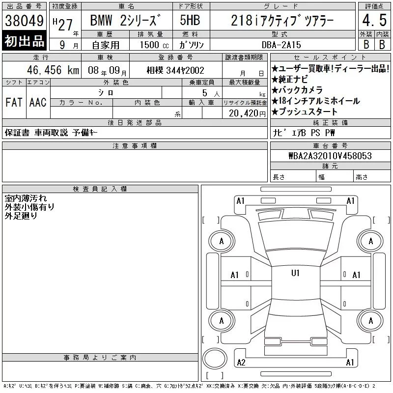 BMW 2-Series с аукциона Японии CAA Tokyo лот № 38049