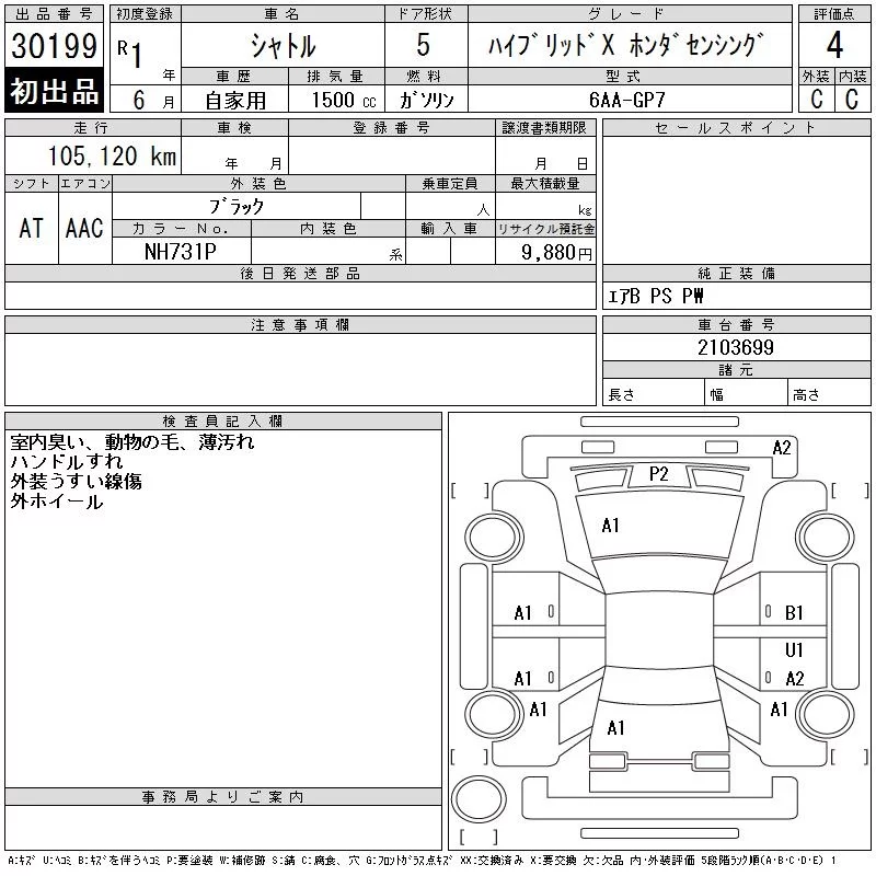 Honda SHUTTLE с аукциона Японии CAA Gifu лот № 30199