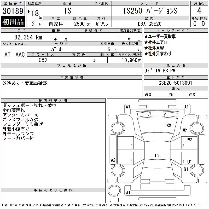 Lexus IS с аукциона Японии CAA Tokyo лот № 30189