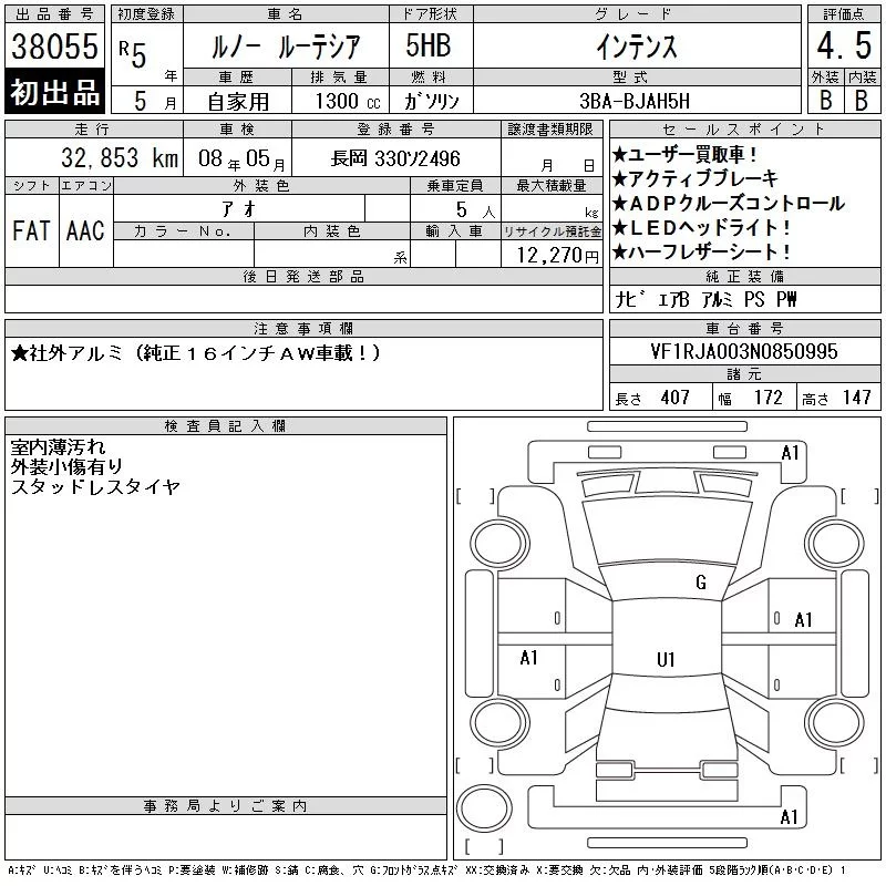Renault LUTECIA с аукциона Японии CAA Tokyo лот № 38055
