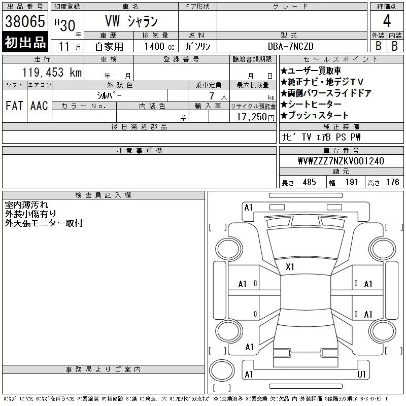 Volkswagen SHARAN с аукциона Японии CAA Tokyo лот № 38065