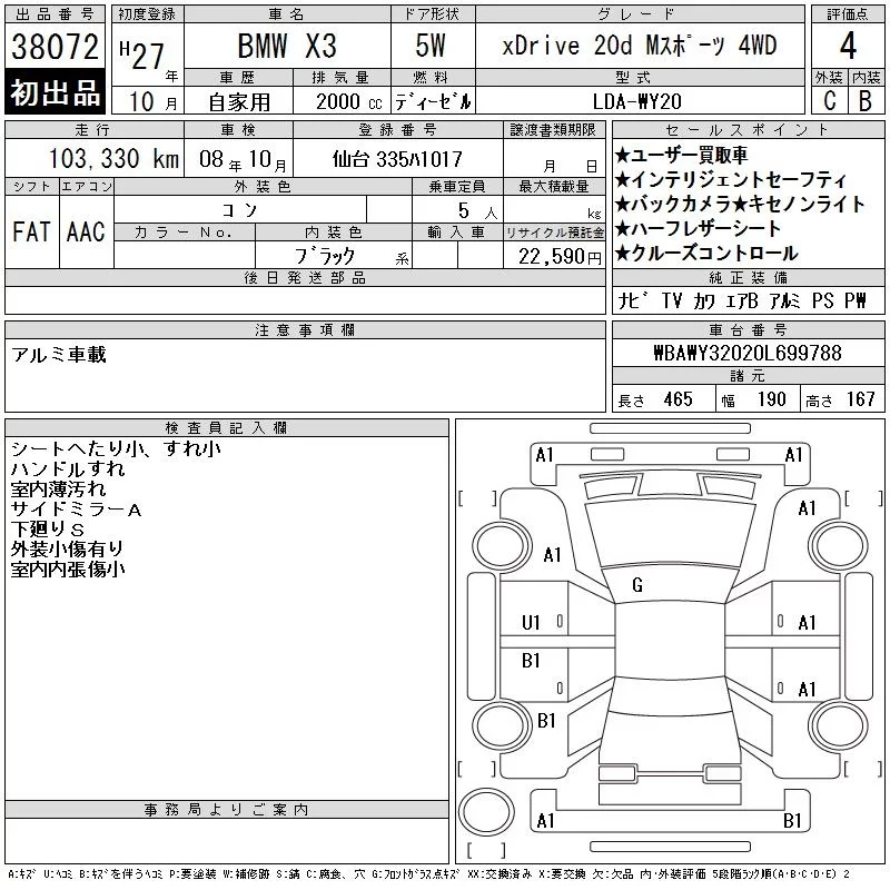 BMW X3 с аукциона Японии CAA Tokyo лот № 38072