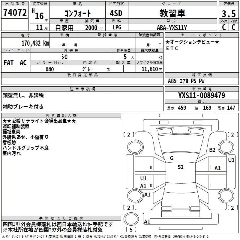 Toyota COMFORT с аукциона Японии TAA Shikoku лот № 74072