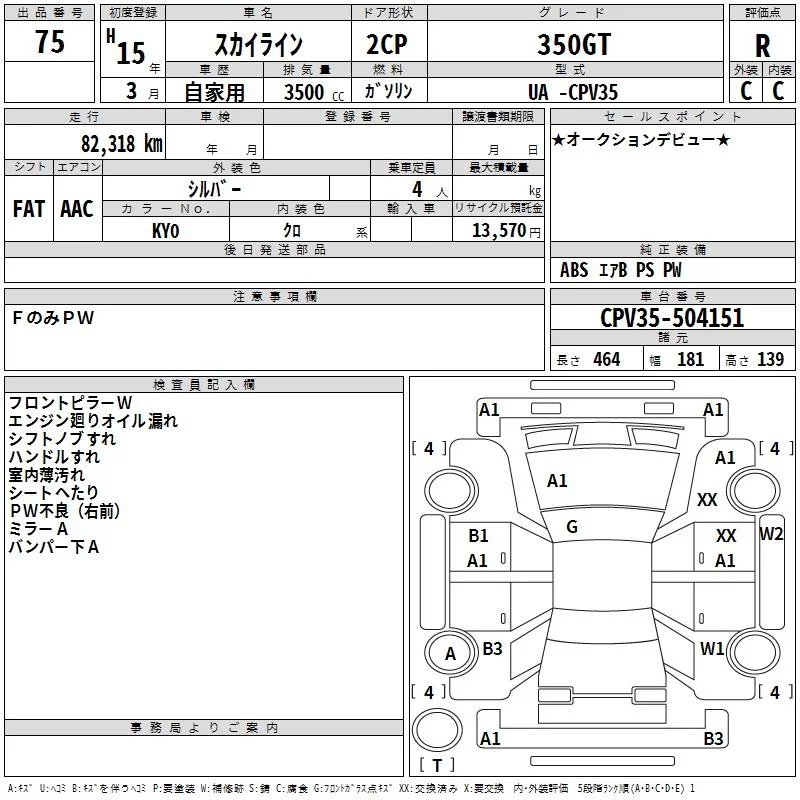 Nissan SKYLINE с аукциона Японии TAA Shikoku лот № 75