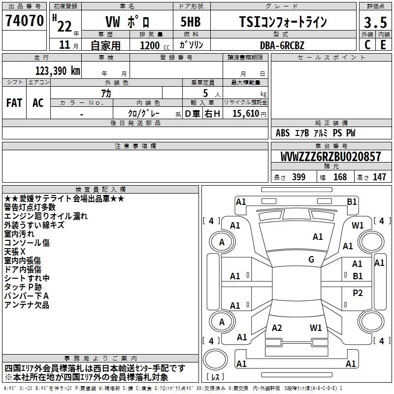 Volkswagen POLO с аукциона Японии TAA Shikoku лот № 74070