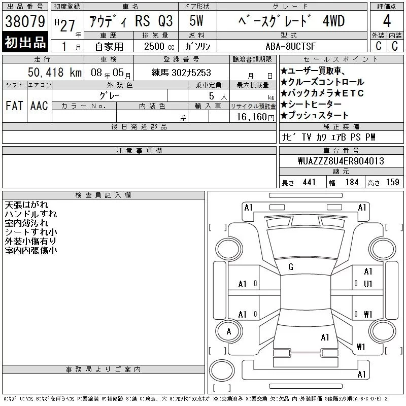 Audi RS Q3 с аукциона Японии CAA Tokyo лот № 38079
