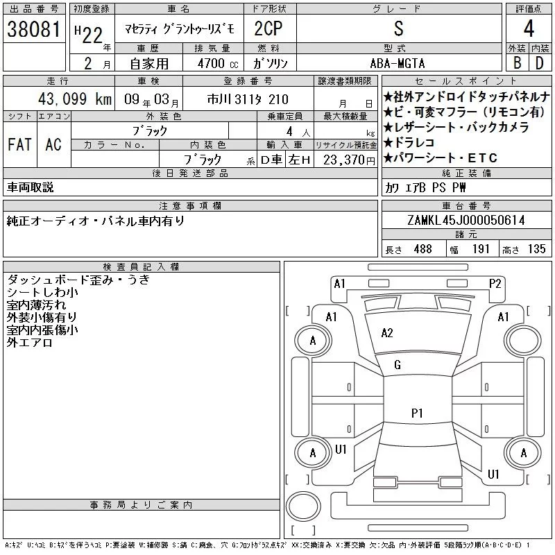 Maserati GRANTURISMO с аукциона Японии CAA Tokyo лот № 38081