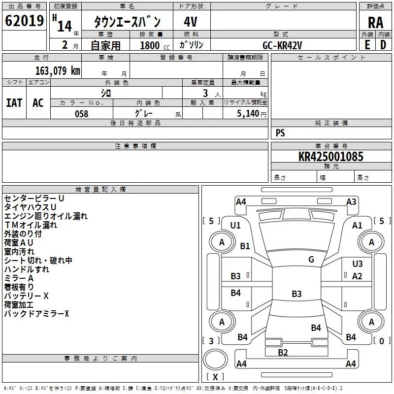 Toyota TOWN ACE VAN с аукциона Японии TAA Hiroshima лот № 62019