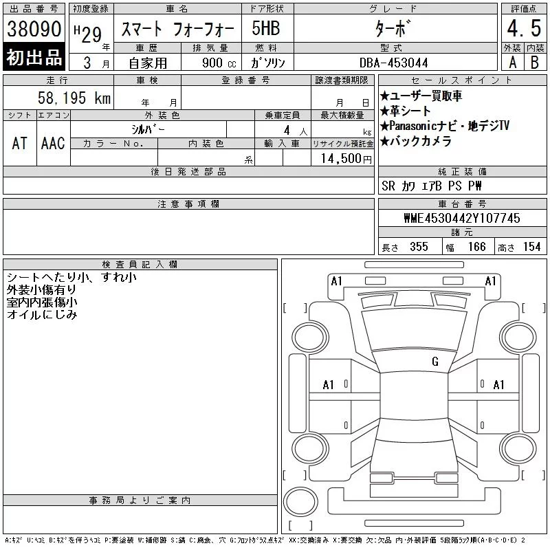 Smart FORFOUR с аукциона Японии CAA Tokyo лот № 38090