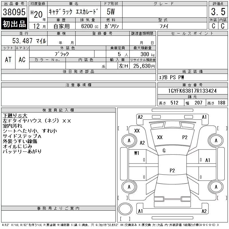 GM CADILLAC ESCALADE с аукциона Японии CAA Tokyo лот № 38095