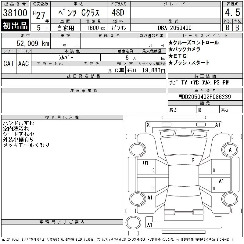 Mercedes-Benz C CLASS с аукциона Японии CAA Tokyo лот № 38100