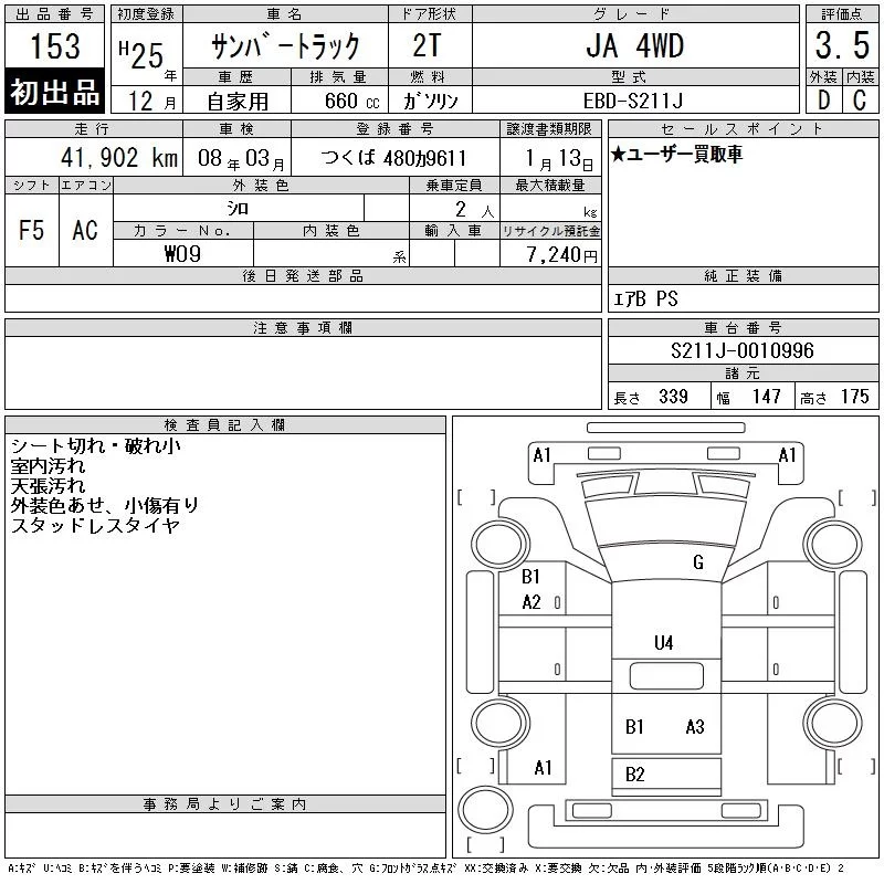 Subaru SAMBAR с аукциона Японии CAA Tokyo лот № 153