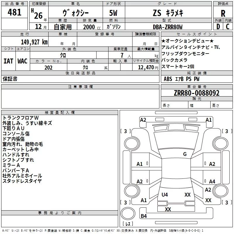 Toyota VOXY с аукциона Японии TAA Kinki лот № 481