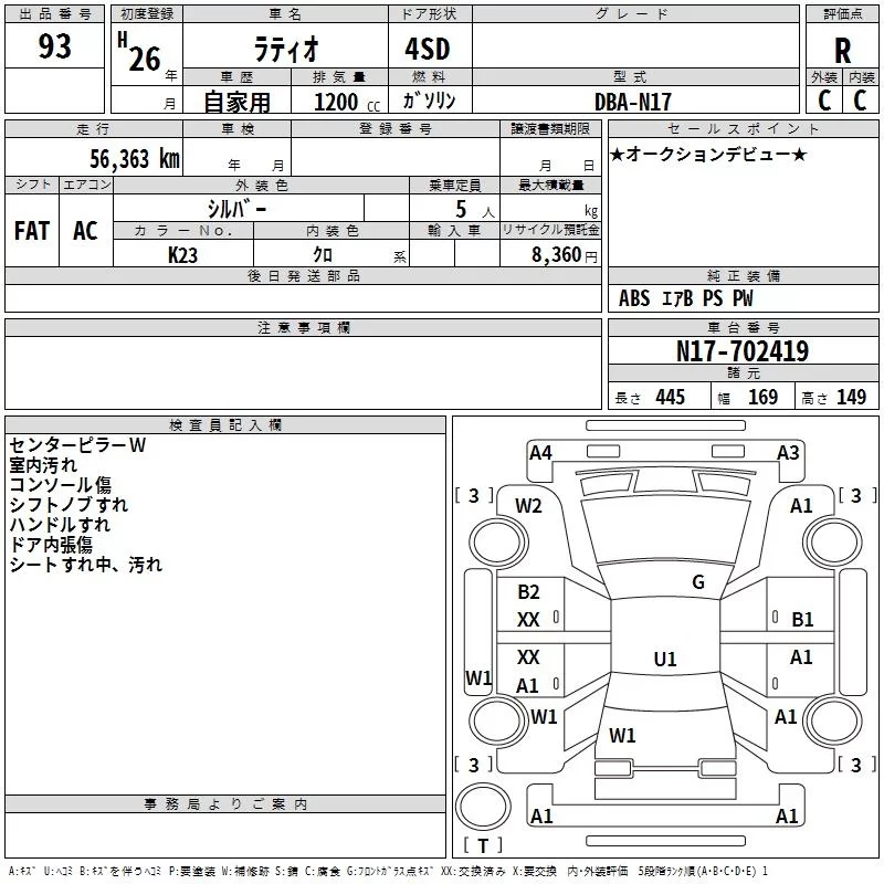 Nissan LATIO с аукциона Японии TAA Shikoku лот № 93