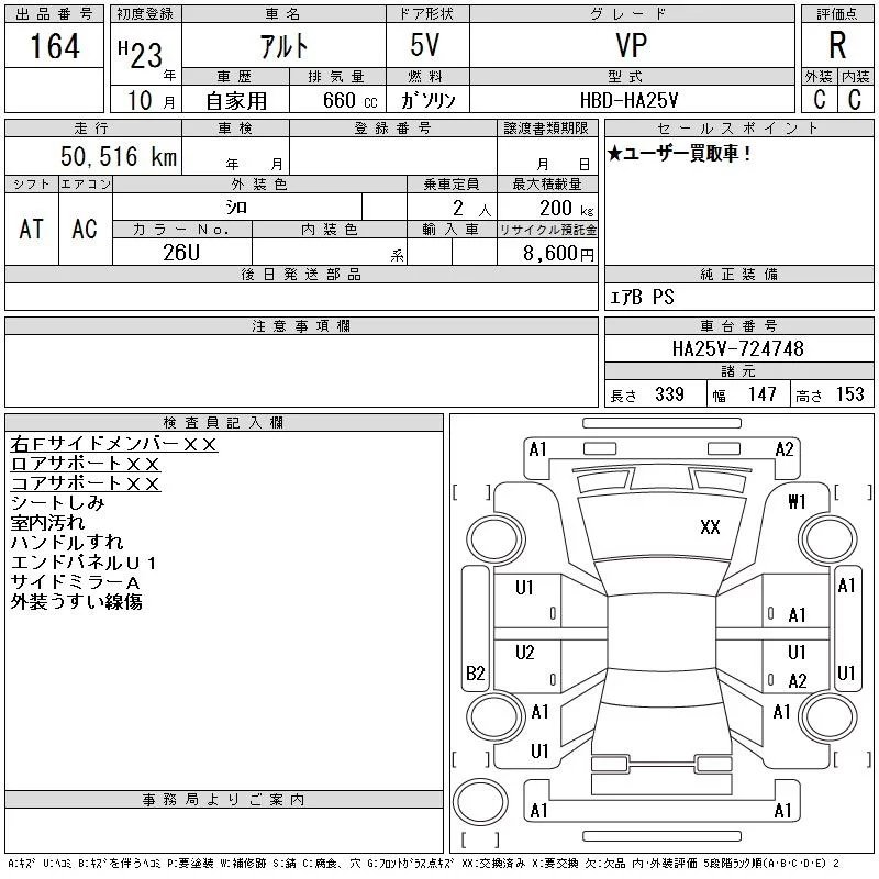 Suzuki ALTO VAN с аукциона Японии CAA Tokyo лот № 164