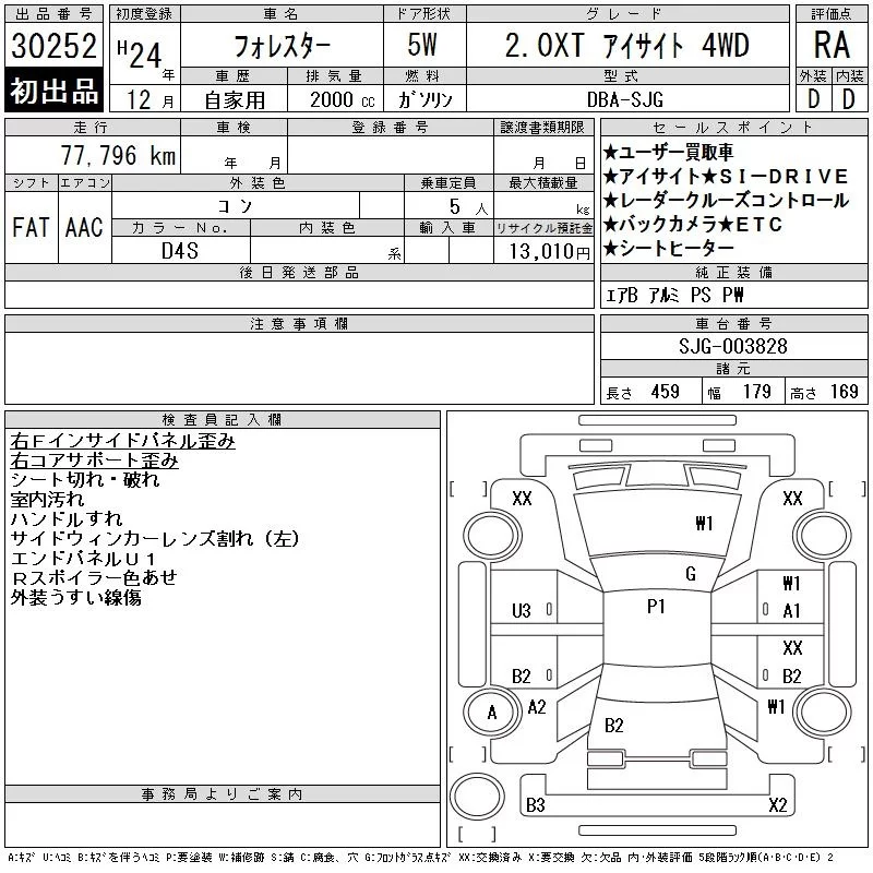 Subaru FORESTER с аукциона Японии CAA Tokyo лот № 30252