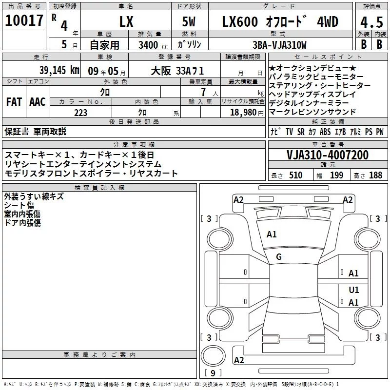 Lexus LX с аукциона Японии TAA Kinki лот № 10017