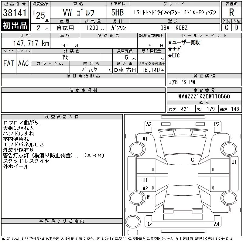 Volkswagen GOLF с аукциона Японии CAA Tokyo лот № 38141