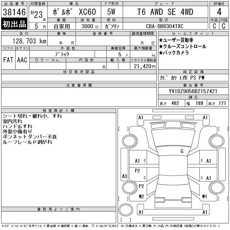 Volvo XC60 с аукциона Японии CAA Tokyo лот № 38146