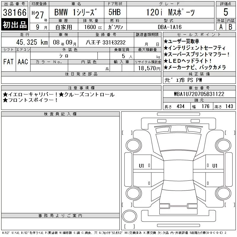 BMW 1-Series с аукциона Японии CAA Tokyo лот № 38166