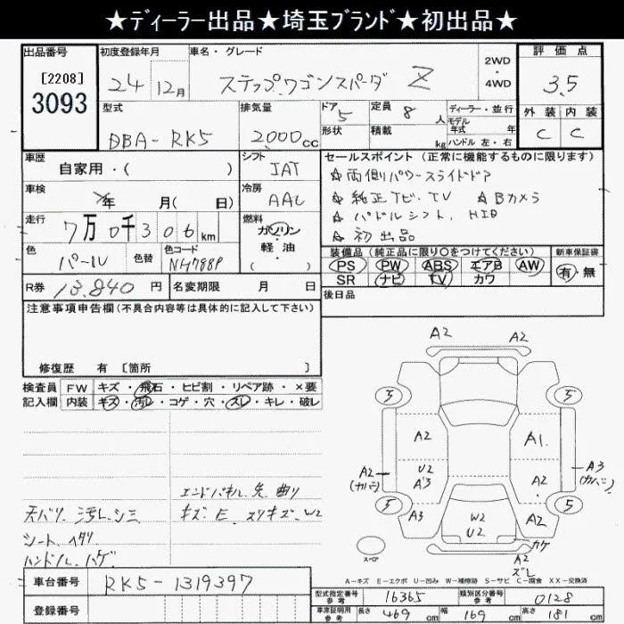 Honda STEP WAGON с аукциона Японии JU Saitama лот № 3093