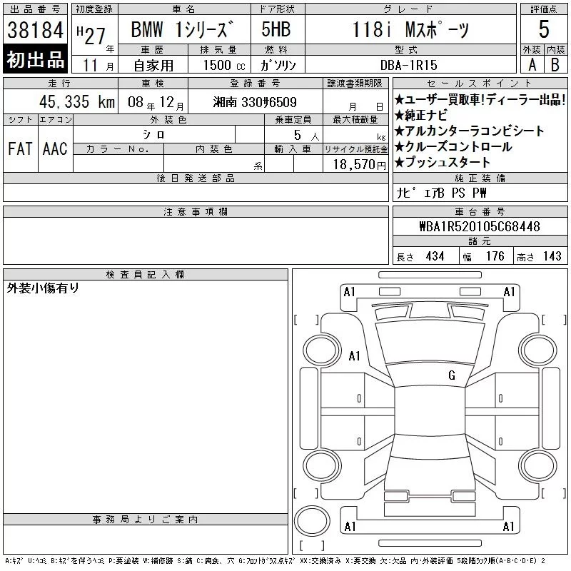 BMW 1-Series с аукциона Японии CAA Tokyo лот № 38184