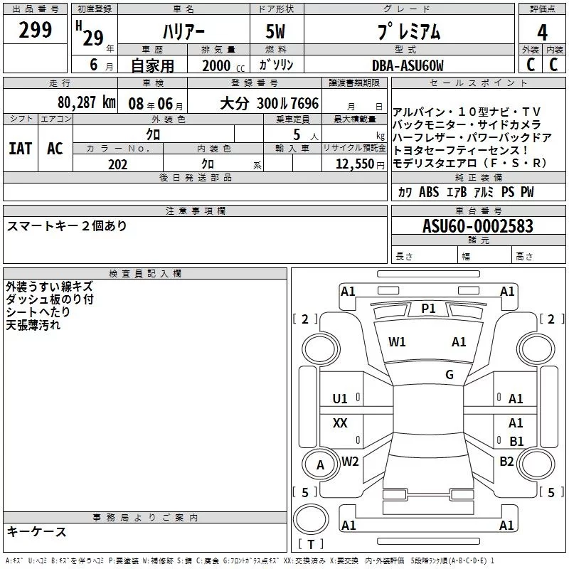 Toyota HARRIER с аукциона Японии TAA Kyushu лот № 299