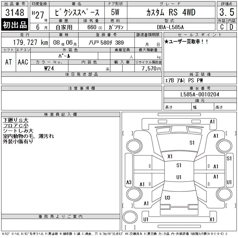 Toyota PIXIS SPACE с аукциона Японии CAA Tohoku лот № 3148