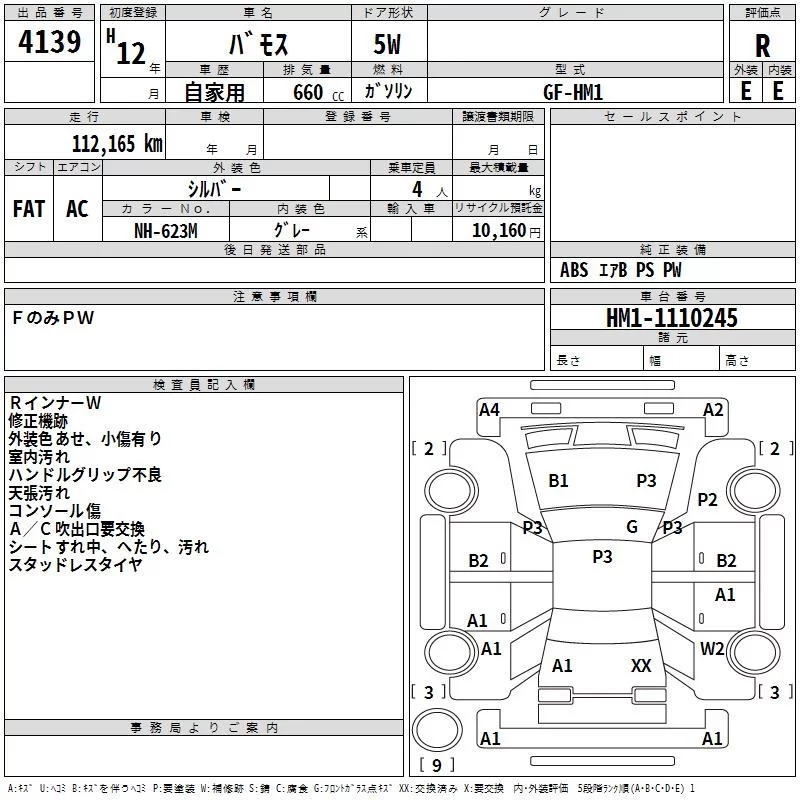 Honda VAMOS с аукциона Японии TAA Shikoku лот № 4139