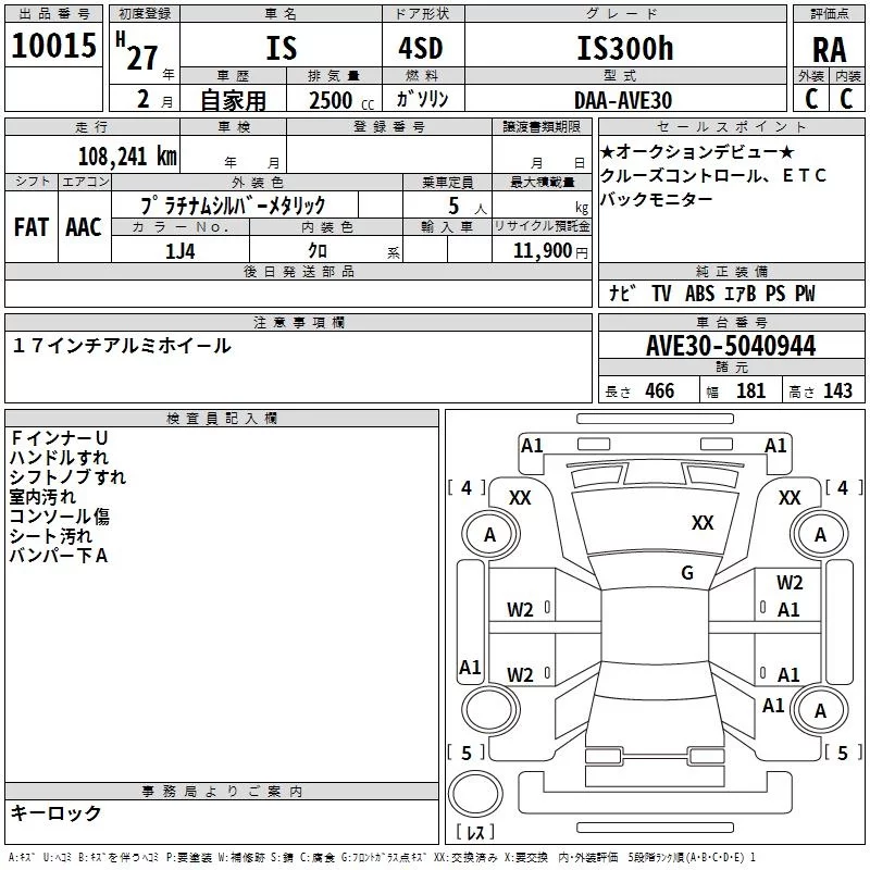 Lexus IS с аукциона Японии TAA Hiroshima лот № 10015