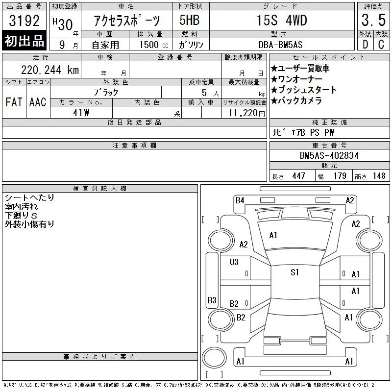 Mazda AXELA с аукциона Японии CAA Tohoku лот № 3192