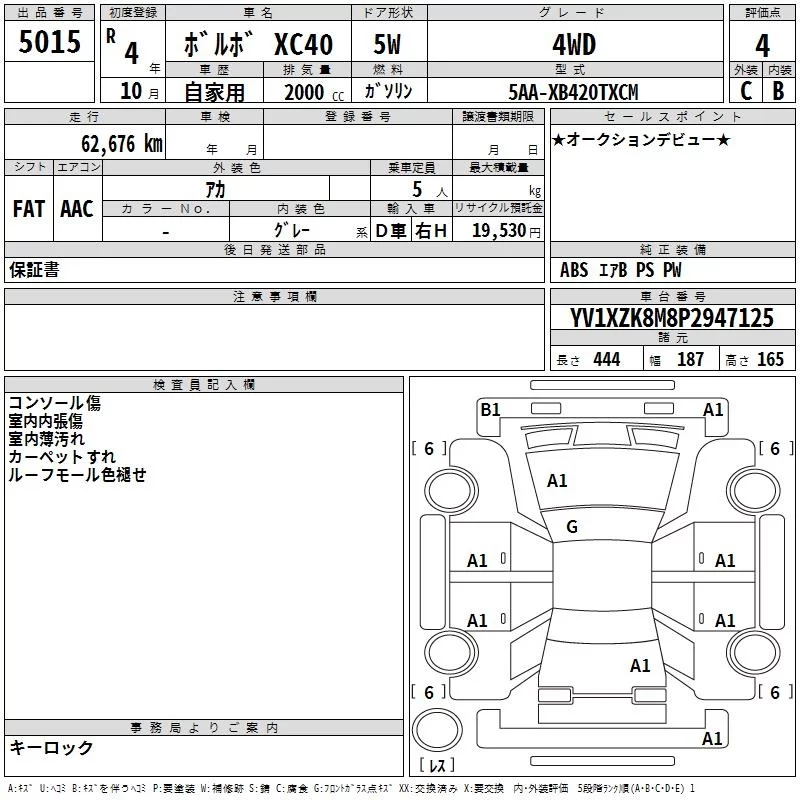 Volvo XC40 с аукциона Японии TAA Hiroshima лот № 5015