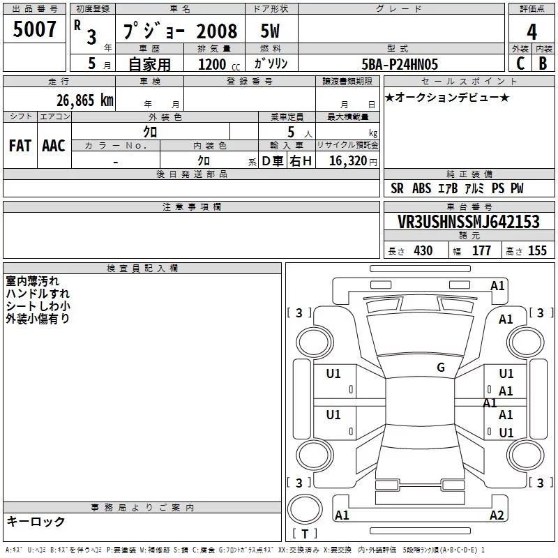 Peugeot 2008 с аукциона Японии TAA Shikoku лот № 5007