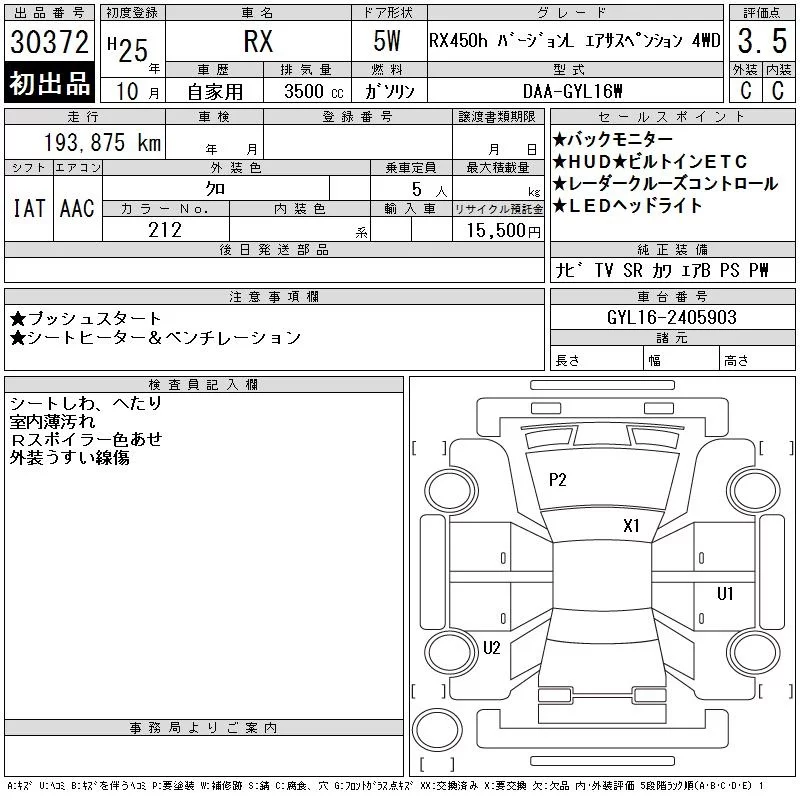 Lexus RX с аукциона Японии CAA Tokyo лот № 30372