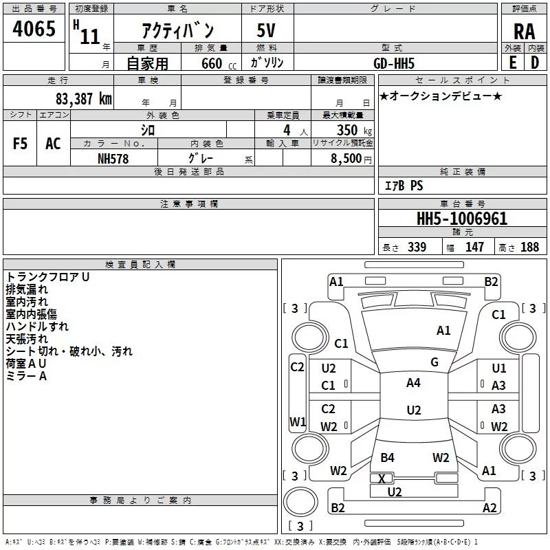 Honda ACTY VAN с аукциона Японии TAA Minami Kyushu лот № 4065