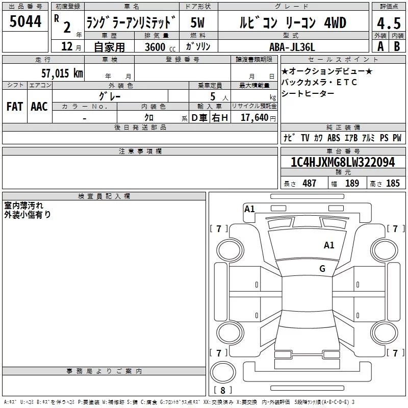 Chrysler JEEP WRANGLER с аукциона Японии TAA Kinki лот № 5044