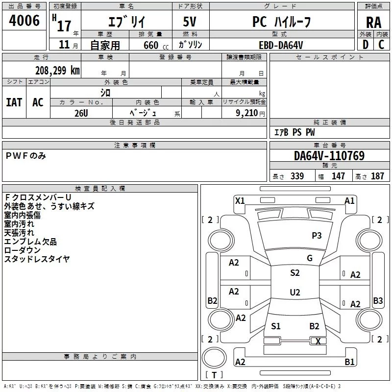 Suzuki EVERY с аукциона Японии TAA Kyushu лот № 4006